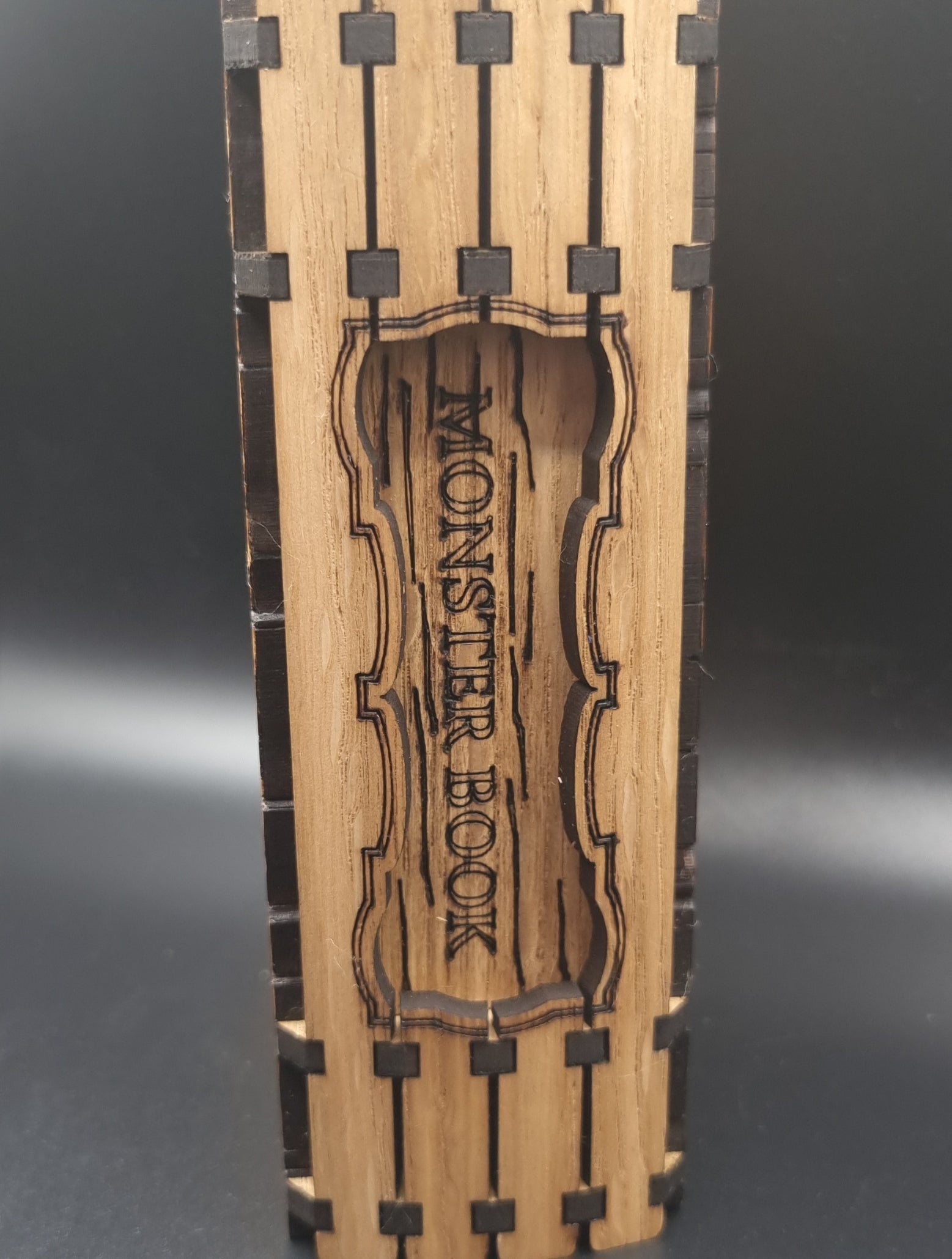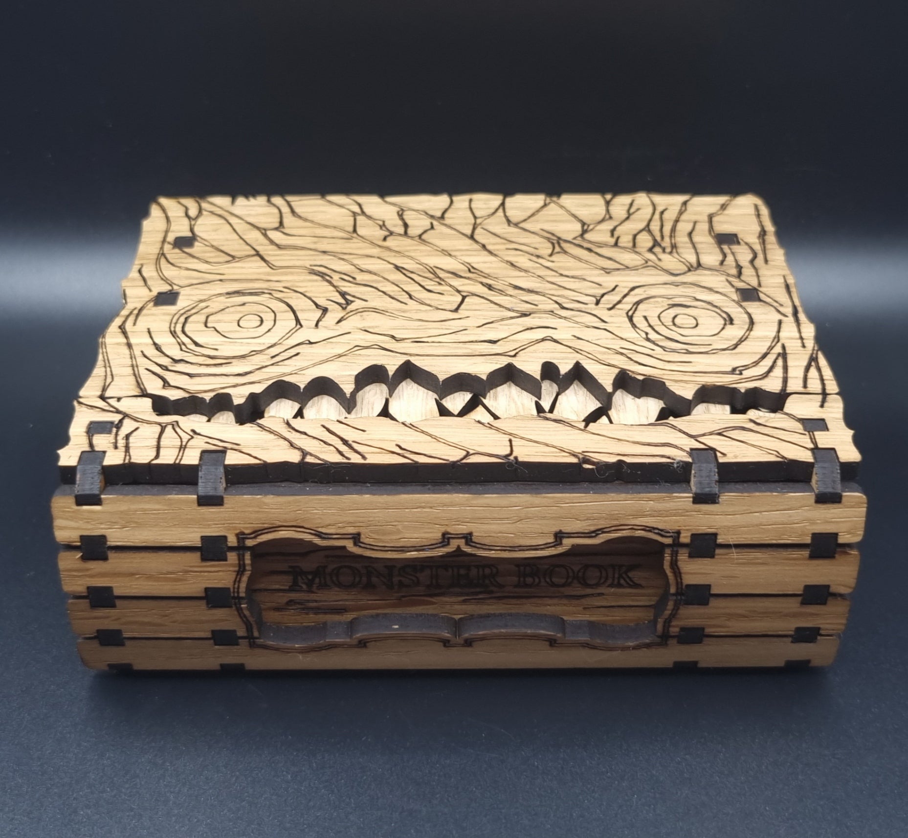Wir präsentieren die ultimative Aufbewahrungslösung für all Ihre Spielkarten – die Monster Book Card Box! Diese stilvolle und langlebige Aufbewahrungsbox besteht aus hochwertigem Eichenfurnier und ist im Stil eines gruseligen und geheimnisvollen Buches gestaltet, komplett mit einem gruseligen Monsterdesign auf dem Cover.